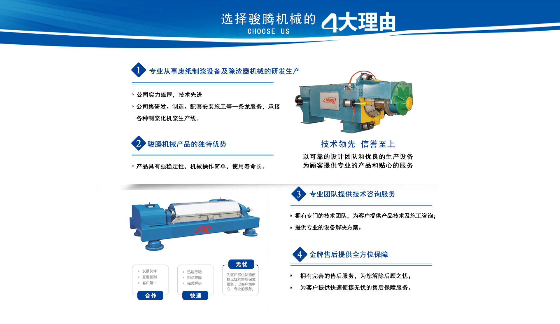 安丘市駿騰機械制造有限公司位于中國風(fēng)箏之都濰坊南35公里,座落在青云湖畔,是具有活力的安丘市興安街道工業(yè)園。 依托風(fēng)箏之都完善的工業(yè)基礎(chǔ)和發(fā)達(dá)的機械制造業(yè),公司致力于廢紙制漿設(shè)備及除渣器機械的研究與制造。 公司始終堅持以市場需求為先導(dǎo),客戶利益為目標(biāo),嚴(yán)格執(zhí)行國家技術(shù)及行業(yè)標(biāo)準(zhǔn),保證產(chǎn)品品質(zhì),提供專業(yè)服務(wù),用專業(yè)的產(chǎn)品與真誠的客戶實現(xiàn)共同發(fā)展,是我們終生奮斗的目標(biāo)。讓我們攜手共進(jìn),創(chuàng)造美好明天。 我們熱情期待著您的光臨指導(dǎo),洽談業(yè)務(wù)! 查看更多>>